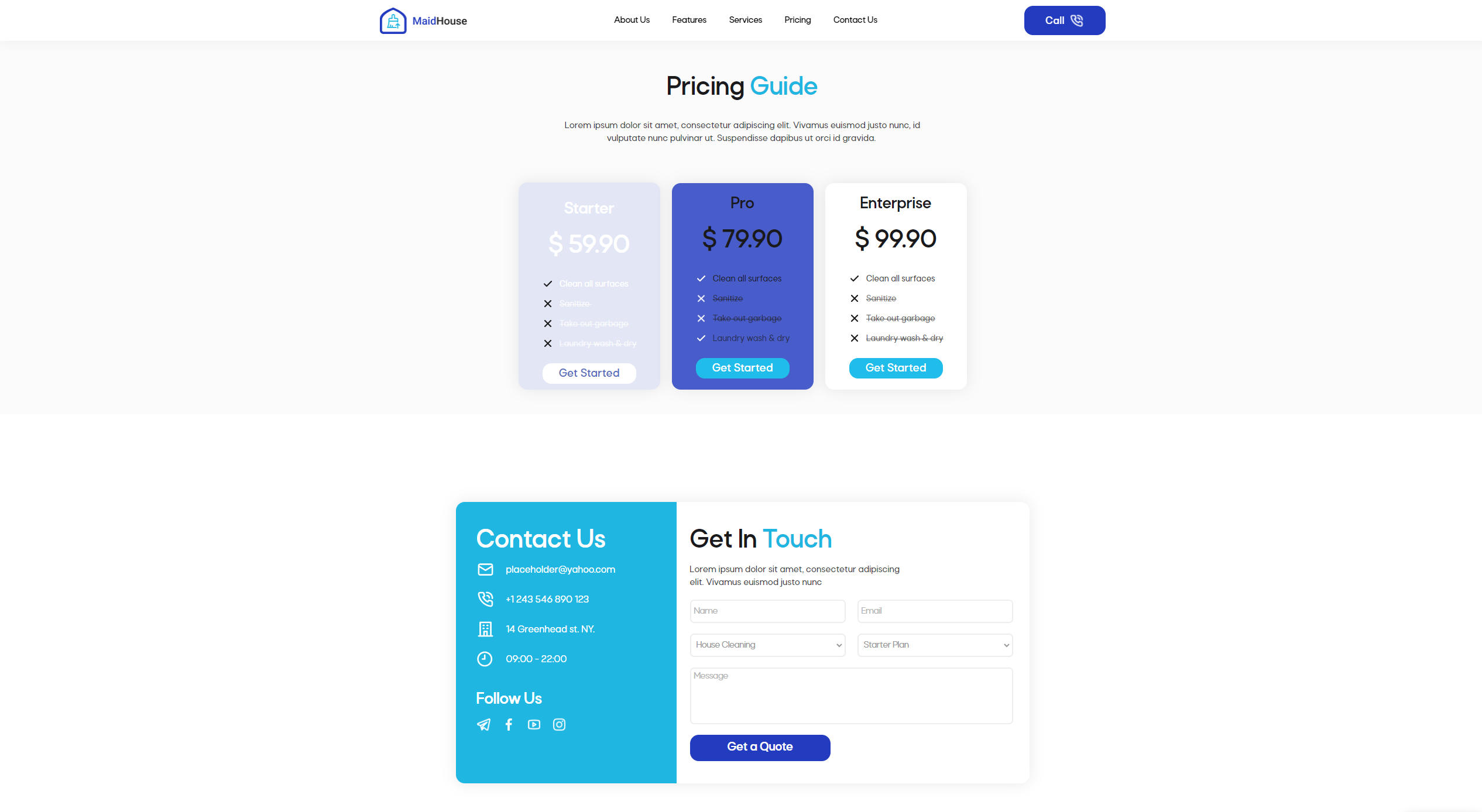 # Maid House - Cleaning Service Landing Page